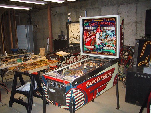 I just acquired a Captain Fantastic in July of this year. All I've done to the machine so far is to get it to the point where it can play a game. Thanks to Clay and his great repair manuals I was able to get the machine running in about a day. The backglass is NOS from Mayfair and I have an overlay from Arcade Grafix that I'll be putting on during the restoration. Watch this spot for more during the restoration!